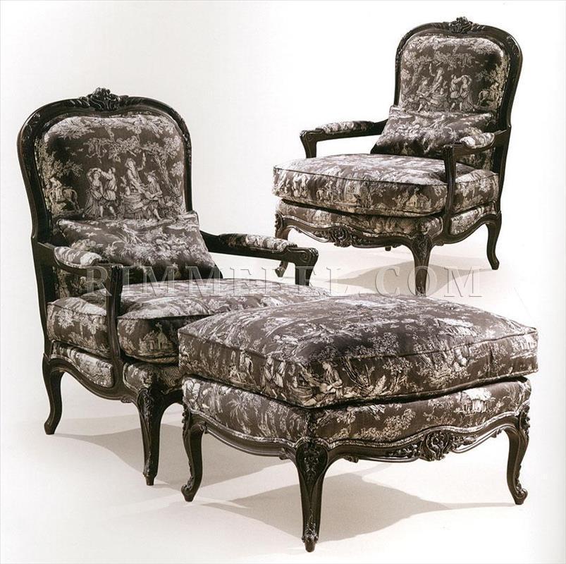 Кресло, подлокотники с мягкими накладками. Декорировано резными элементами ручной работы. Наполнение - полиуретан. Возможны различные варианты обивки и отделки.