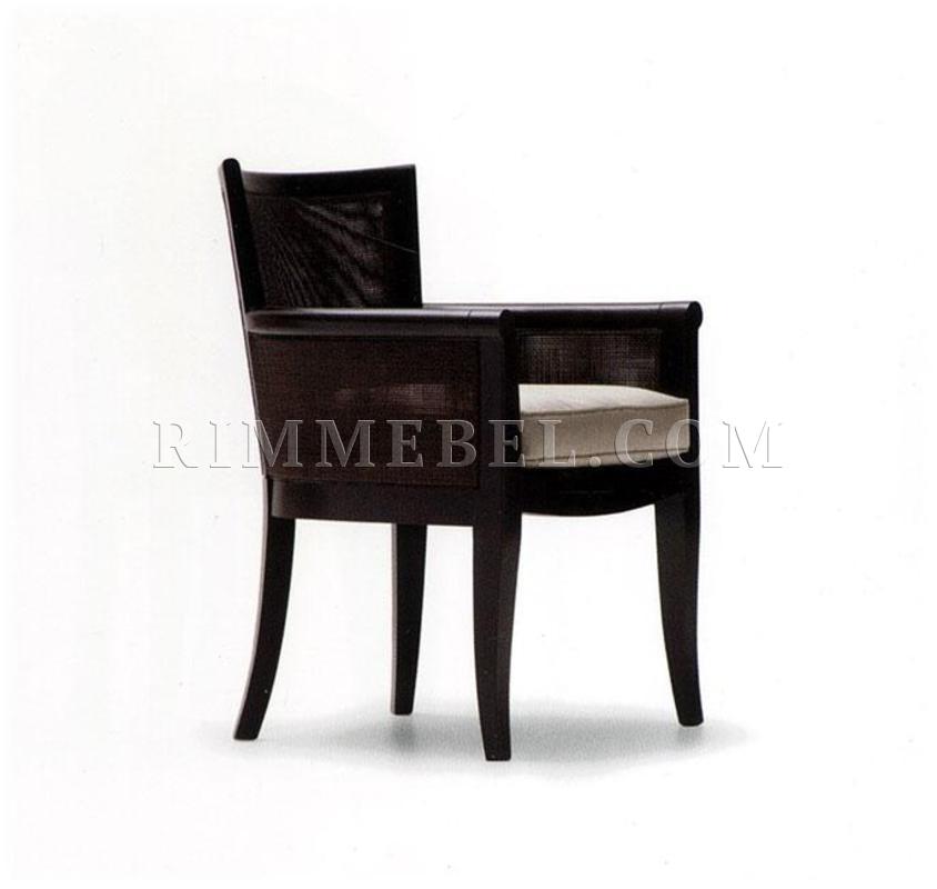 Кресло с сетчатой спинкой и подлокотниками. Структура - массив дерева. Обивка - кожа, наполнение - полиуретан. Возможны различные варианты обивки и отделки