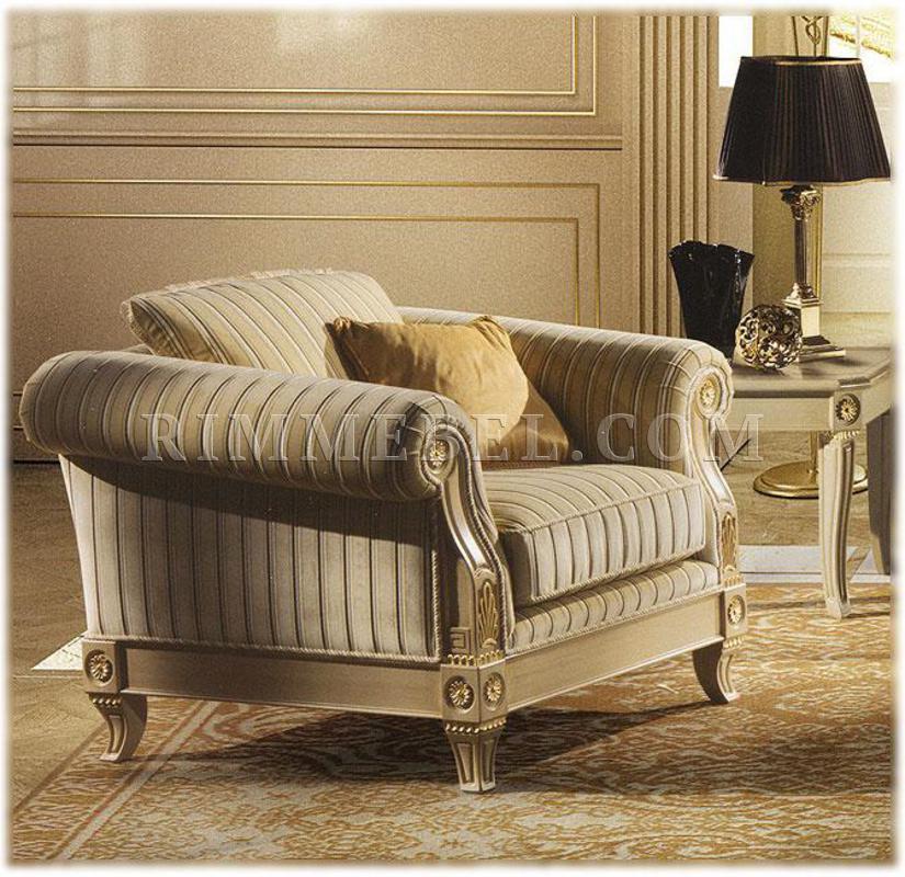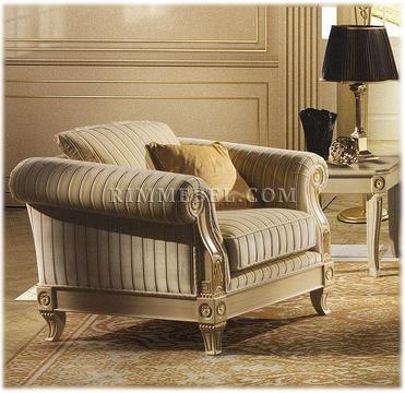 Кресло. Декорированo резьбой. Ручная работа. Наполнение - полиуретан. Возможны различные варианты отделки (красное дерево, махагон, охра, декапе и т.д.) и обивки.