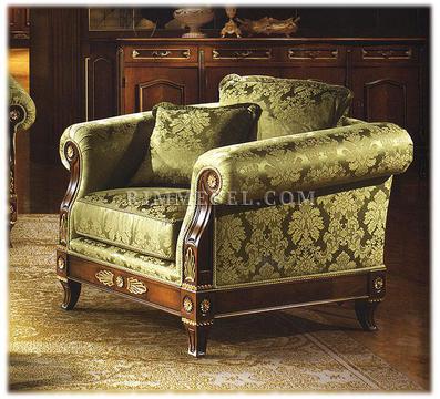Кресло. Декорированo резьбой. Ручная работа. Наполнение - полиуретан. Возможны различные варианты отделки (красное дерево, махагон, охра, декапе и т.д.) и обивки.