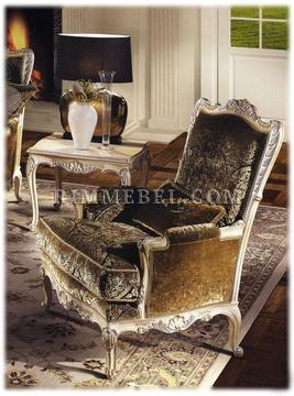 Кресло, подлокотники с мягкими накладками. Наполнение - полиуретан. Декорировано резьбой. Ручная работа. Возможны различные варианты отделки (красное дерево, махагон, охра, декапе и т.д.) и обивки.