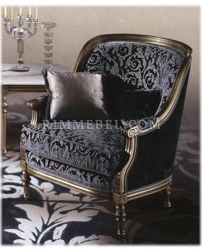 Кресло, подлокотники с мягкими накладками. Наполнение - полиуретан. Декорировано резьбой. Ручная работа. Возможны различные варианты отделки (красное дерево, махагон, охра, декапе и т.д.) и обивки.