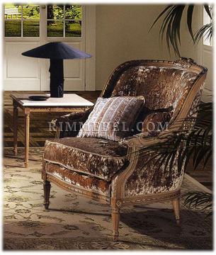 Кресло, подлокотники с мягкими накладками. Наполнение - полиуретан. Декорировано резьбой. Ручная работа. Возможны различные варианты отделки (красное дерево, махагон, охра, декапе и т.д.) и обивки.