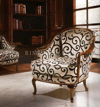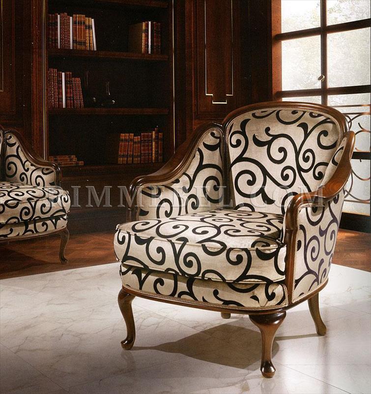Кресло, жесткие подлокотники. Наполнение - полиуретан. Ручная работа. Возможны различные варианты отделки (красное дерево, махагон, охра, декапе и т.д.) и обивки.