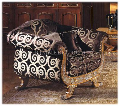 Кресло. Декорированo резьбой. Ручная работа. Наполнение - полиуретан. Возможны различные варианты отделки (красное дерево, махагон, охра, декапе и т.д.) и обивки.