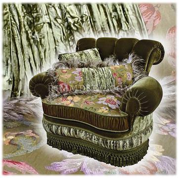 Кресло, декорированное бахромой. Обивка - ткань, наполнение - полиуретан. Возможен другой вариант обивки. В дополнение можно заказать декоративные подушки.