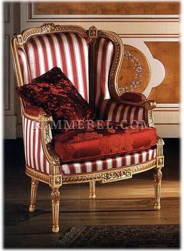Кресло, подлокотники с мягкими накладками, декорировано резными элементами. Наполнение - полиуретан. Возможны другие варианты отделки и обивки. В дополнение можно заказать декоративные подушки.