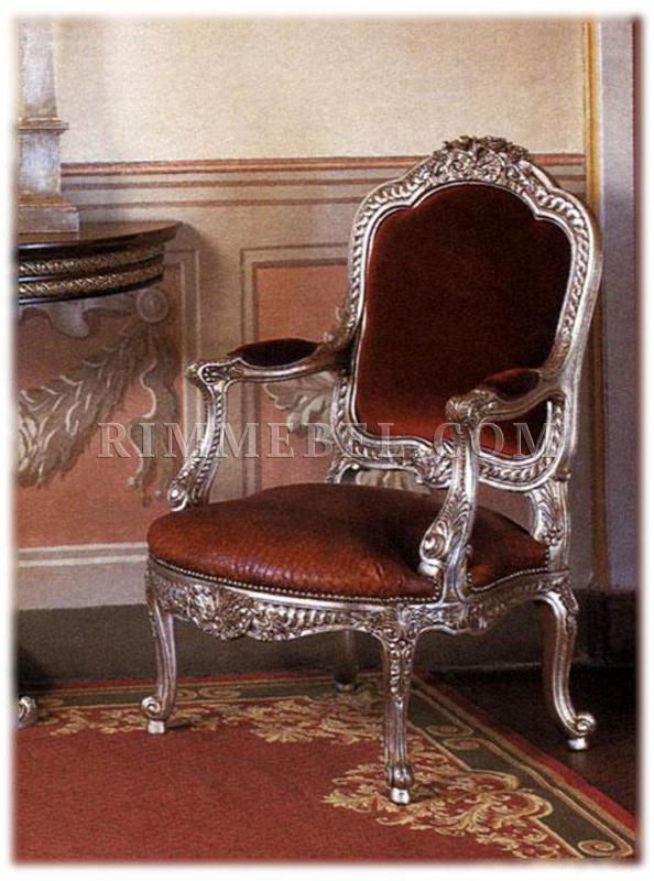 Кресло, декорированное резьбой. Наполнение - полиуретан. Возможны другие варианты отделки и обивки, в том числе выполнение в ткани клиента