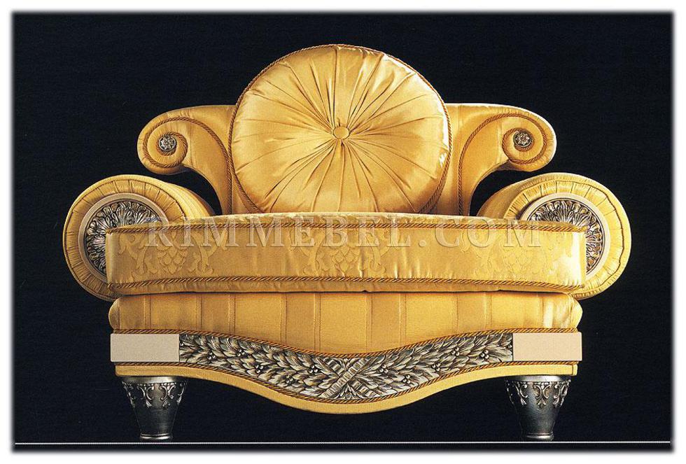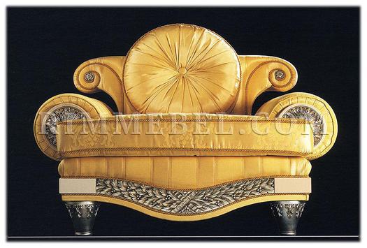 Кресло, декорированное резьбой. Наполнение - полиуретан. Возможны другие варианты отделки и обивки, в том числе выполнение в ткани клиента. Декоративная подушка включена в стоимость