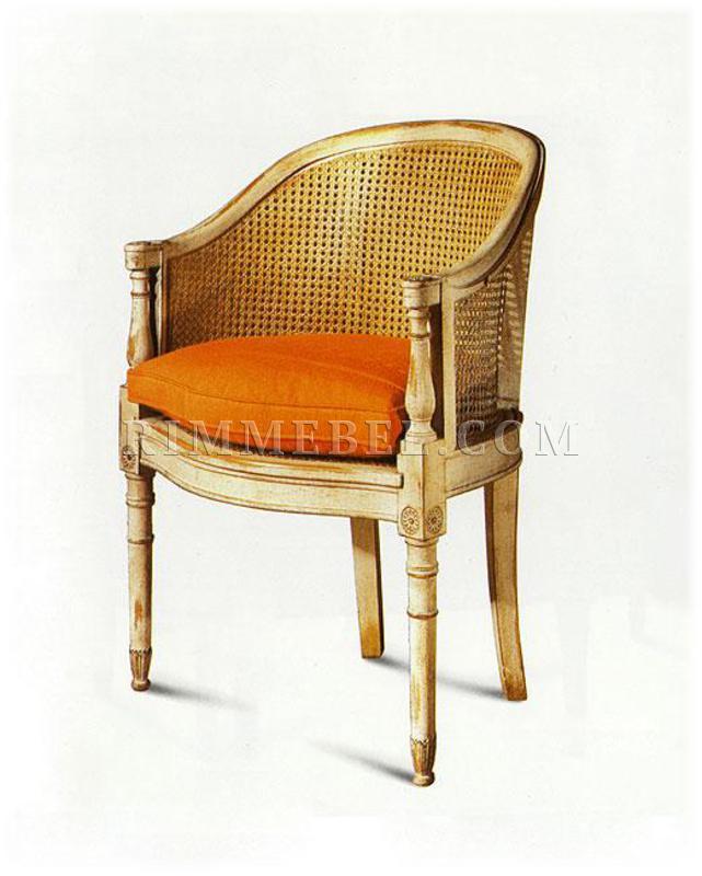 Кресло, жесткая плетеная спинка, декорировано резными элементами. Наполнение - полиуретан. Возможны другие варианты отделки.