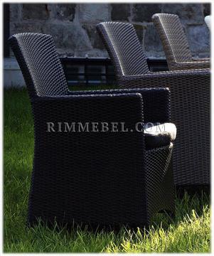 Кресло. Каркас выполнен из алюминия с облицовкой из плетеного синтетического волокна. Возможные цветовые варианты: бронза, натуральный, белый или мокка.