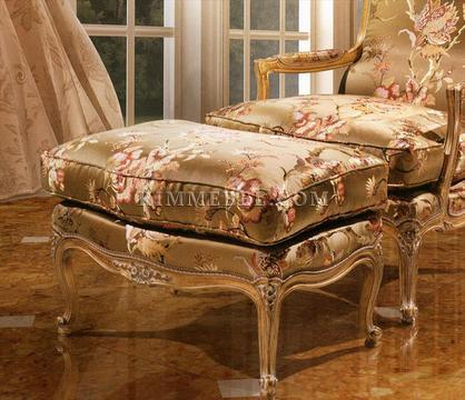 Пуф. Декорирован резными элементами ручной работы. Наполнение - полиуретан. Возможны различные варианты обивки и отделки.