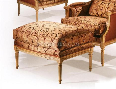 Пуф. Декорирован резными элементами ручной работы. Наполнение - полиуретан. Возможны различные варианты обивки и отделки.