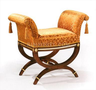 Пуф. Декорирован резными элементами ручной работы. Наполнение - полиуретан. Возможны различные варианты обивки и отделки.