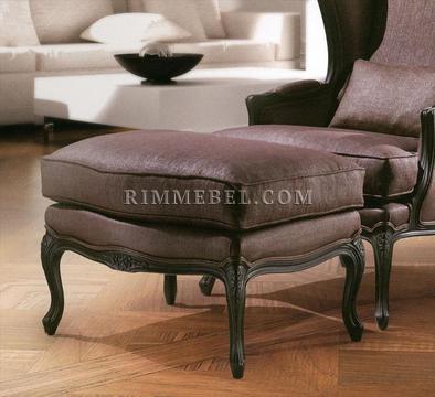 Пуф. Декорирован резными элементами ручной работы. Наполнение - полиуретан. Возможны различные варианты обивки и отделки.