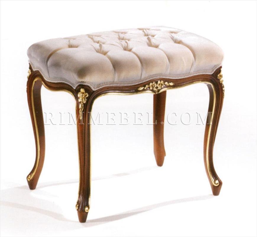 Пуф. Декорирован резными элементами ручной работы. Наполнение - полиуретан. Возможны различные варианты обивки и отделки.