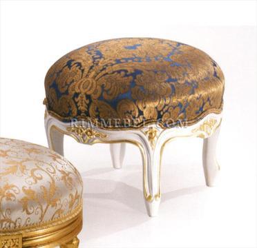 Пуф. Декорирован резными элементами ручной работы. Наполнение - полиуретан. Возможны различные варианты обивки и отделки.