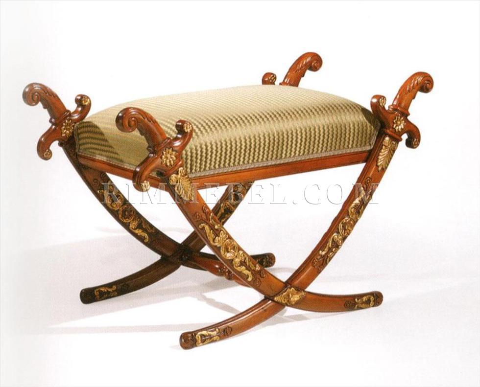 Пуф. Декорирован резными элементами ручной работы. Наполнение - полиуретан. Возможны различные варианты обивки и отделки.