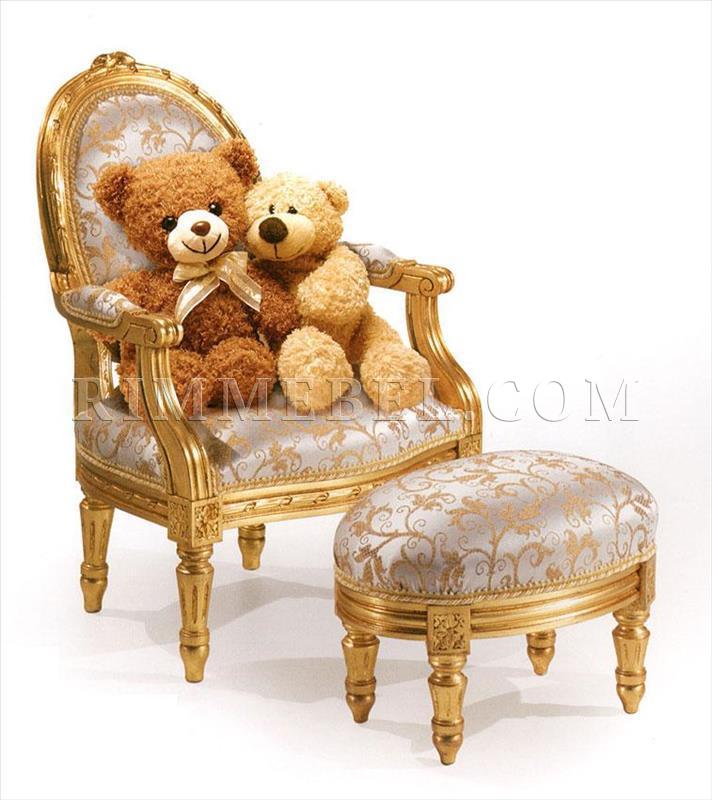 Детское креслице. Декорировано резными элементами ручной работы. Наполнение - полиуретан. Возможны различные варианты обивки и отделки.