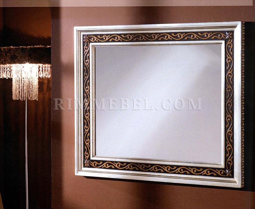 Прямоугольное зеркало, рама декорирована резными элементами. Возможны другие варианты отделки.
