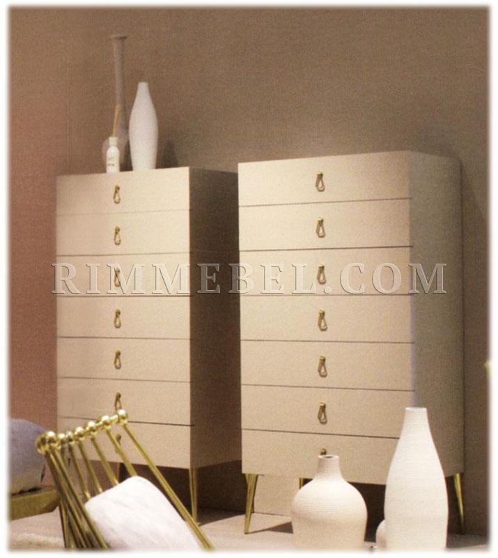 Высокий комод с 7-ю ящиками. Отделка - крашенный в песочный цвет, латунь.