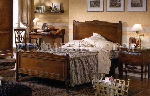 Односпальная кровать с высоким жестким изголовьем, без изножья. Возможны различные варианты отделки.