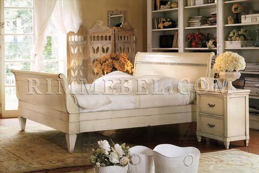 Двуспальная кровать с высоким жестким изголовьем и изножьем. Возможны различные варианты отделки.