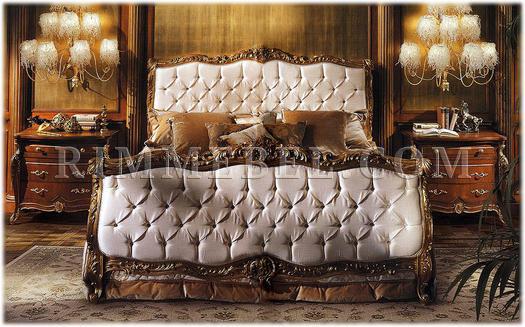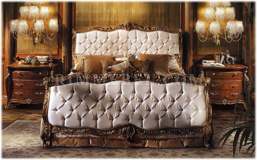 Двуспальная кровать. Мягкие изголовье и изножье (возможен вариант без изножья). Наполнение - полиуретан. Капитоне выполнено с кристаллами Swarovski. Декорирована резьбой. Ручная работа. Возможны различные варианты отделки (красное дерево, махагон, охра, декапе и т.д.) и обивки.