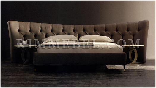Кровать двуспальная с высокой мягкой стенкой. Структура - массив дерева. Обивка - ткань. Возможны различные варианты обивки