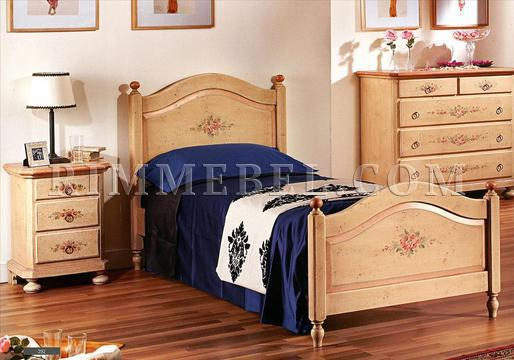 Односпальная кровать с жестким изголовьем и изножьем. Декорирована росписью ручной работы. Возможны другие варианты отделки.