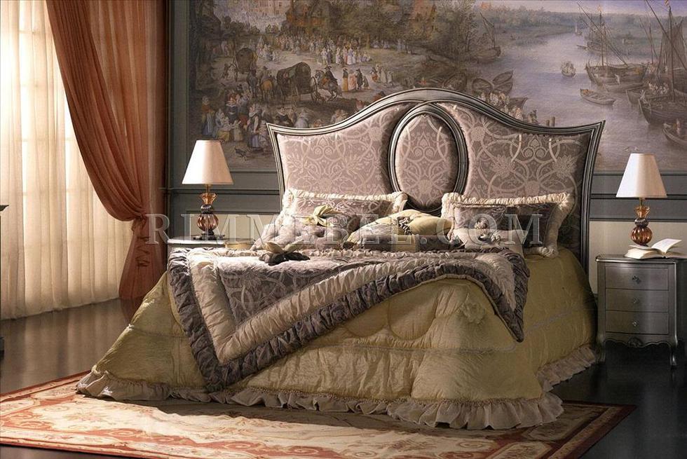 Двуспальная кровать с фигурным мягким изголовьем. Структура - бук. Возможны другие варианты обивки и отделки