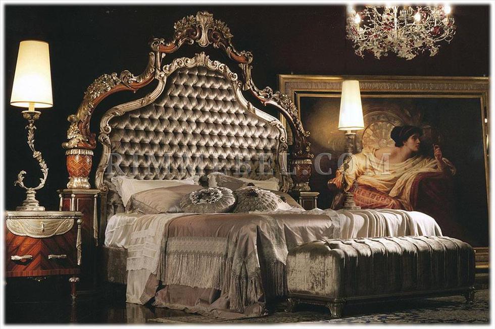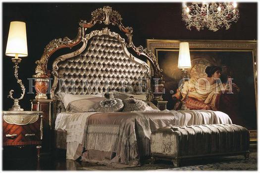 Двуспальная кровать с высоким мягким изголовьем, без изножья. Наполнение - полиуретан. Декорирована резьбой ручной работы. Возможны другие варианты обивки.