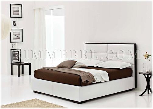 Двуспальная кровать с высоким мягким изголовьем, без изножья. Возможен вариант кровати с контейнером. Наполнение - полиуретан. Возможны другие варианты обивки (кожа, ткань).