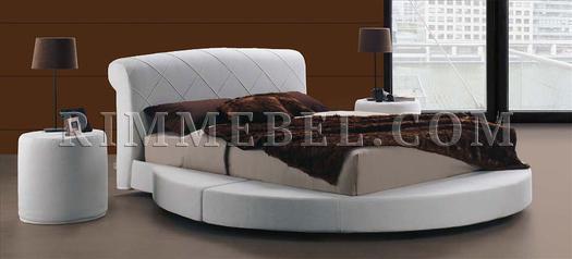 Двуспальная круглая кровать с высоким мягким изголовьем, без изножья. Наполнение - полиуретан. Возможны другие варианты обивки.
