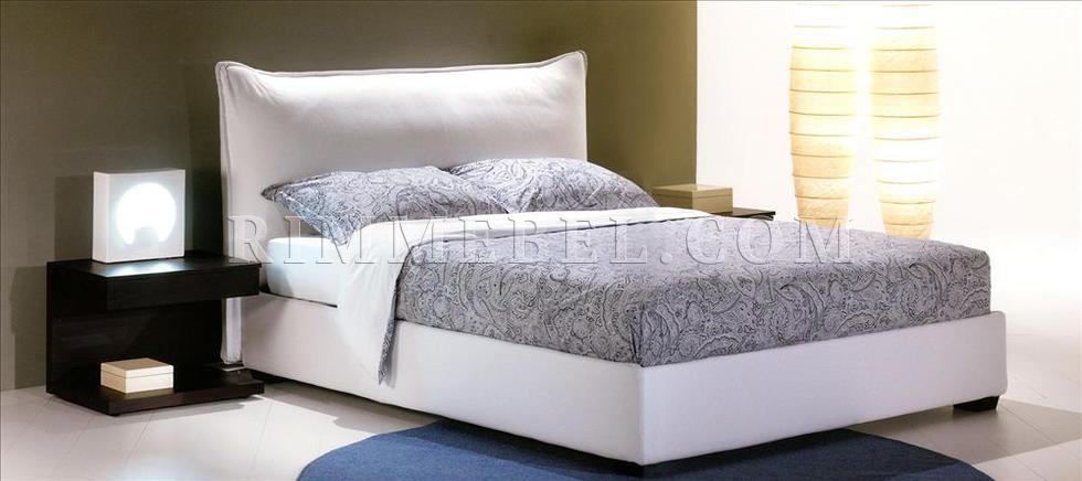 Двуспальная кровать с мягким изголовьем, без изножья. Возможен вариант кровати с контейнером. Наполнение - полиуретан. Возможны другие варианты обивки.