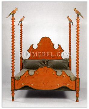 Двуспальная кровать с колоннами, сверху декорированные фигурами в виде птиц. Возможны различные варианты отделки, различные виды росписи и различные декоративные элементы на колоннах