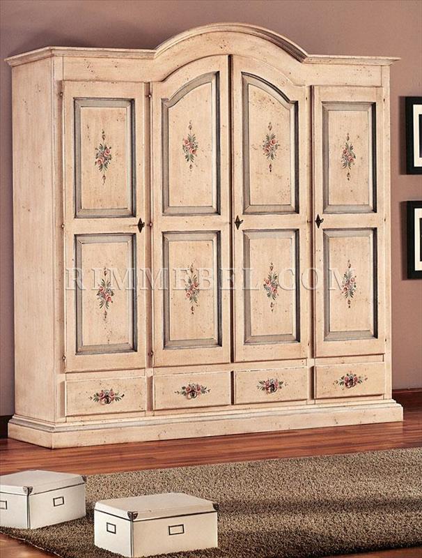 4-х дверный шкаф с 4-мя ящиками. Декорирован росписью ручной работы. Возможны другие варианты отделки.
