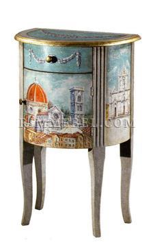 Тумбочка с 1-м ящиком и дверцей. Роспись ручной работы с использованием темпорных красок, порошков и методов состаривания, которые использовались еще во времена флорентийского Ренессанса. Возможны другие варианты отделки.