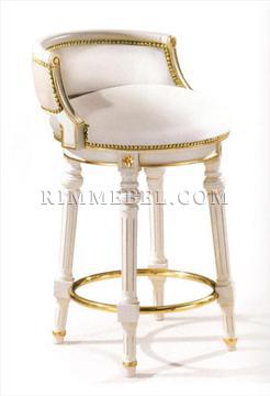 Барный стул со спинкой, мягкие сидение и спинка. Декорирован резными элементами ручной работы. Наполнение - полиуретан. Возможны различные варианты обивки и отделки.