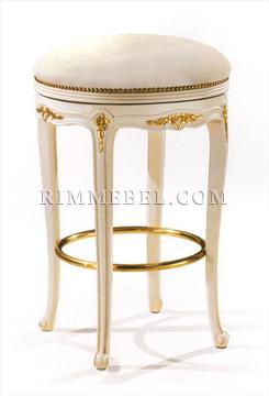 Барный стул, мягкое сидение. Декорирован резными элементами ручной работы. Наполнение - полиуретан. Возможны различные варианты обивки и отделки.