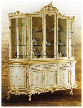 Буфет с 5-ю стеклянными и 5-ю деревянными дверцами, 3 ящика, полки выполнены из стекла. Декорирован резьбой. Ручная работа. Возможны различные варианты отделки (красное дерево, махагон, охра, декапе и т.д.)