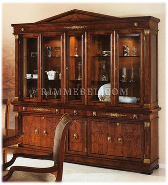 Буфет с 5-ю стеклянными и 5-ю деревянными дверцами, 3 ящика, полки выполнены из стекла. Декорирован резьбой. Ручная работа. Возможны различные варианты отделки (красное дерево, махагон, охра, декапе и т.д.)