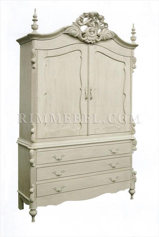 Буфет с 2-мя распашными дверцами и 3-мя ящиками. Внутри 2 полки. Декорирован резьбой. Возможны другие варианты отделки