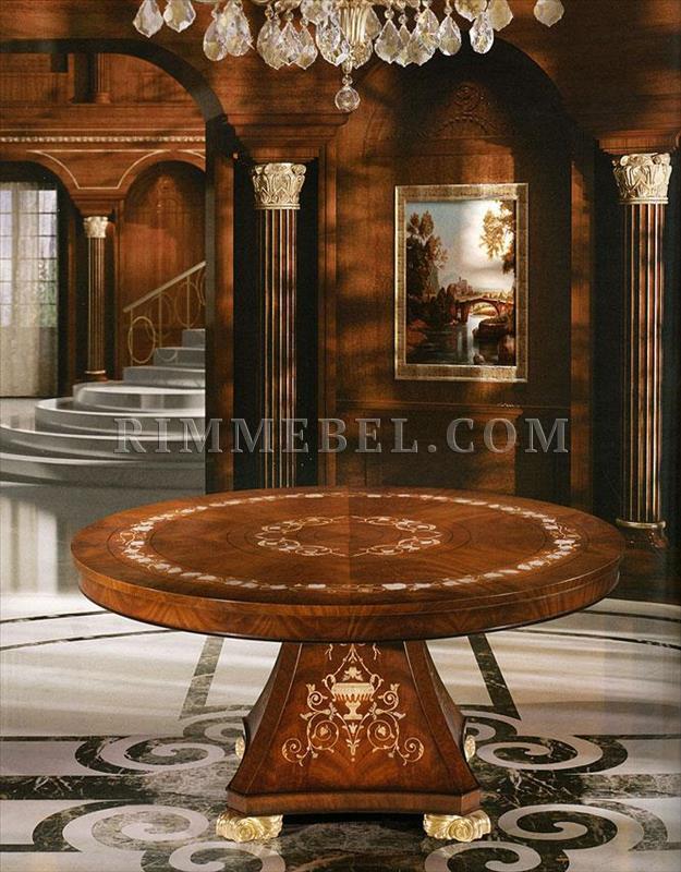 Круглый стол. Столешница инкрустирована перламутром. Декорирован резными элементами ручной работы. Возможны различные варианты отделки.