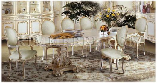 Овальный обеденный стол, возможен вариант стола с 1-м или 2-мя удлинениями по 50 см. Декорирован резьбой. Ручная работа. Возможны различные варианты отделки (красное дерево, махагон, охра, декапе и т.д.)