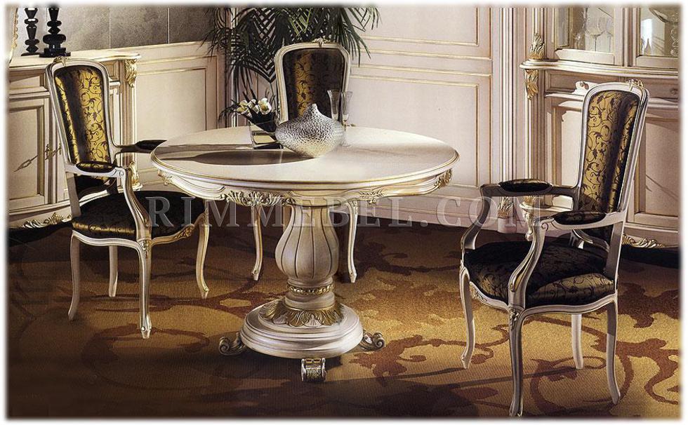 Круглый обеденный стол, возможен вариант стола с 1-м удлинением на 50 см. Декорирован резьбой. Ручная работа. Возможны различные варианты отделки (красное дерево, махагон, охра, декапе и т.д.)