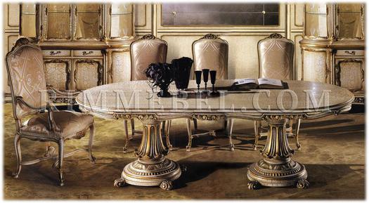 Овальный обеденный стол, возможен вариант стола с 1-м или 2-мя удлинениями по 50 см. Декорирован резьбой. Ручная работа. Возможны различные варианты отделки (красное дерево, махагон, охра, декапе и т.д.)