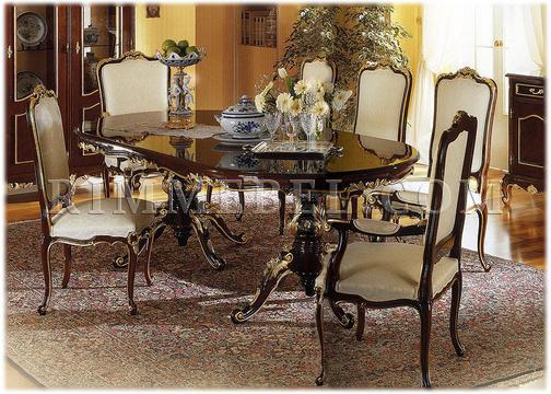 Овальный обеденный стол, возможен вариант стола с 1-м или 2-мя удлинениями по 50 см. Декорирован резьбой. Ручная работа. Возможны различные варианты отделки (красное дерево, махагон, охра, декапе и т.д.)