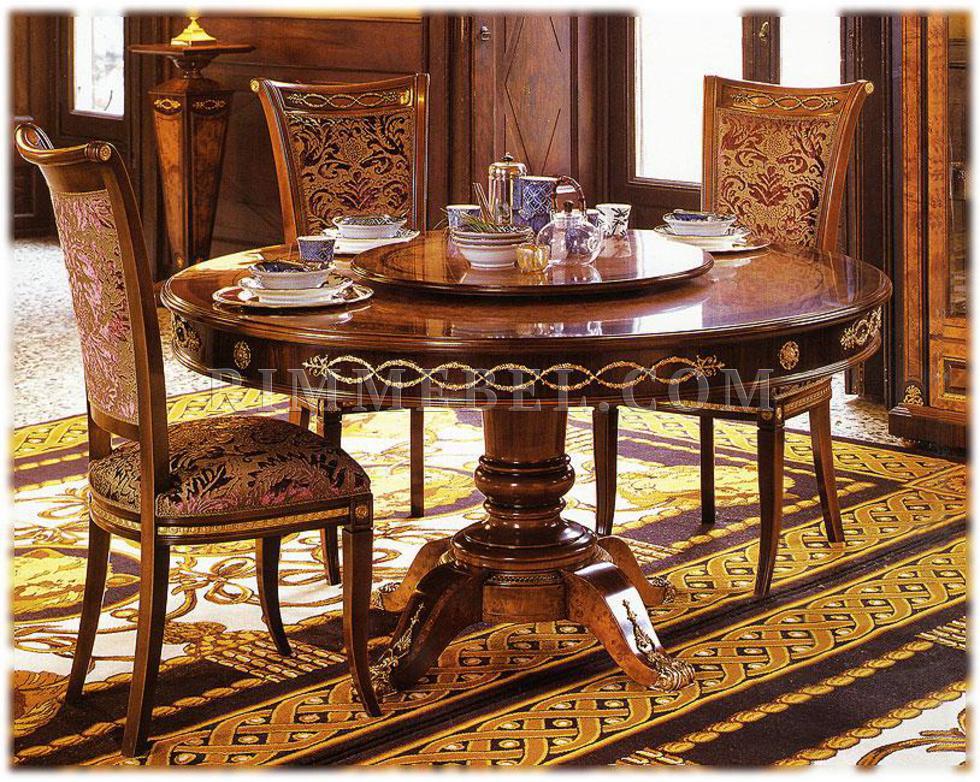 Круглый стол с вращающейся центральной столешницей. Декорирован резными элементами. Возможны другие варианты отделки