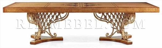 Прямоугольный обеденный стол. Ножки декорированы резьбой ручной работы. Инкрустация выполнена из перламутра.
